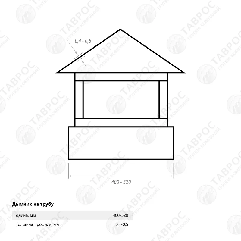 Дымник на трубу Гладкий полиэстер RAL 7024 (Мокрый асфальт) 400*400*0,5