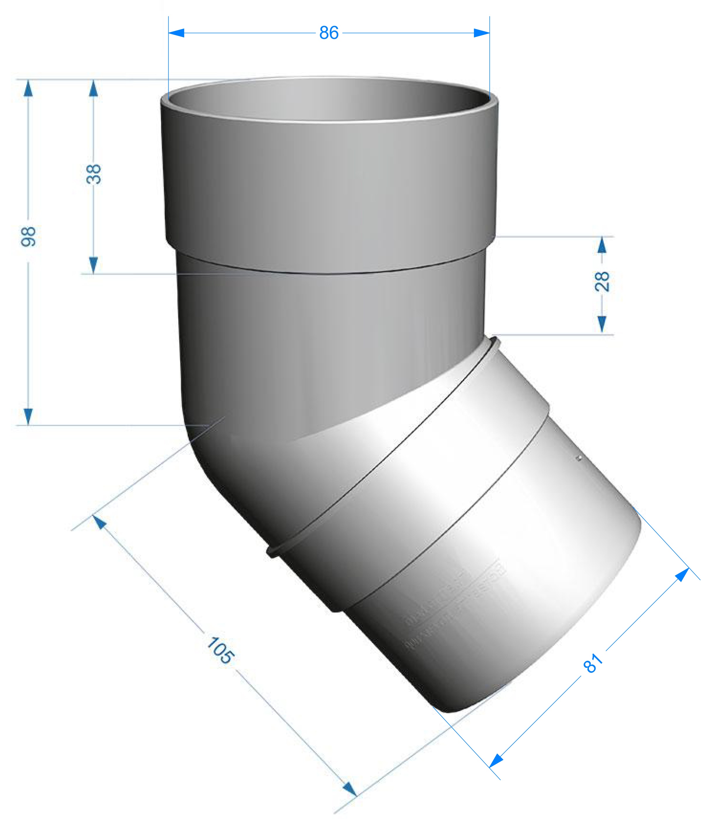 Колено 45° предназначено для обеспечения перехода от воронки к трубе. Колено соединяют между собой отрезком трубы необходимой длины