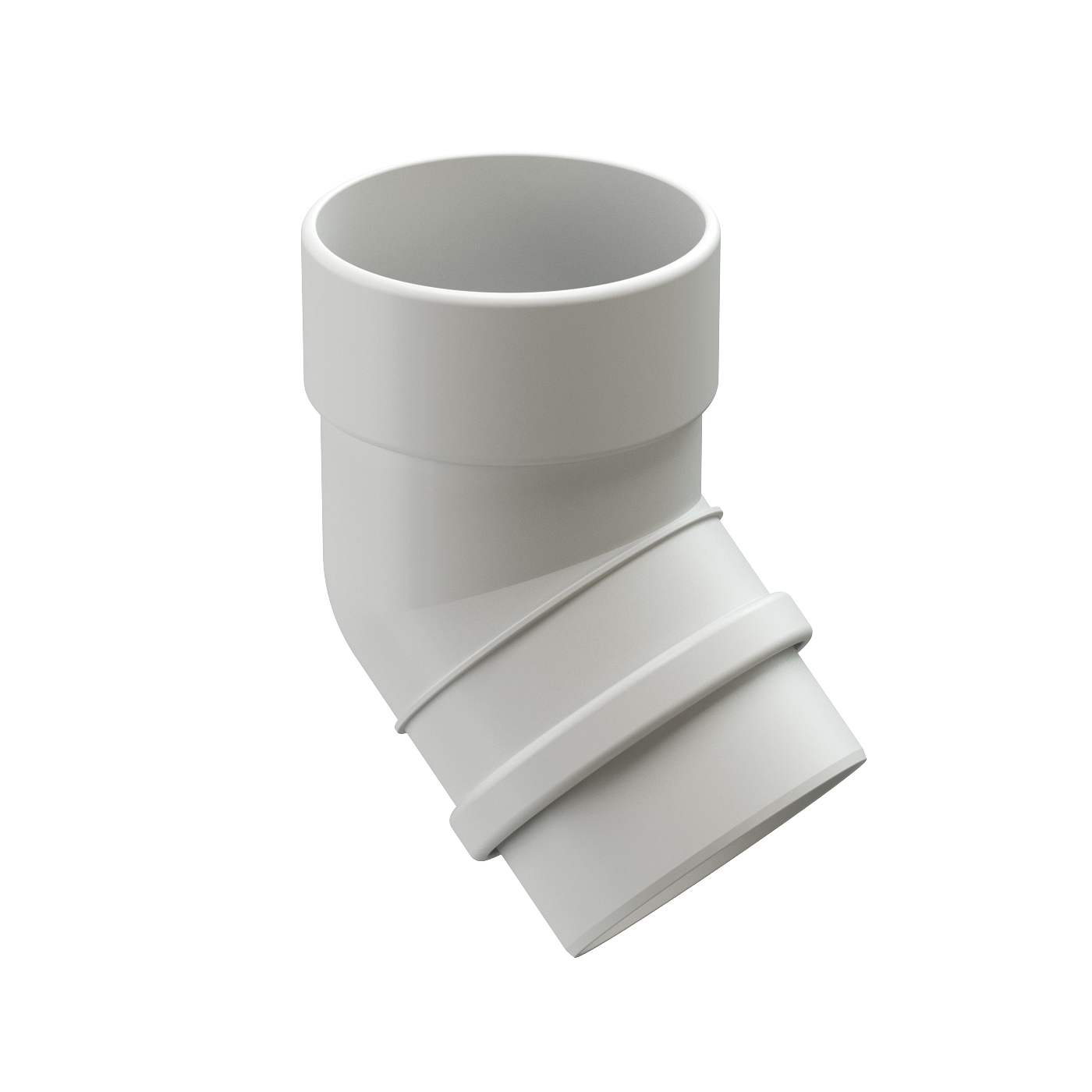 Колено водосточной трубы с углом изгиба 45 градусов нужно чтобы соединить воронку желоба со сливной трубой.