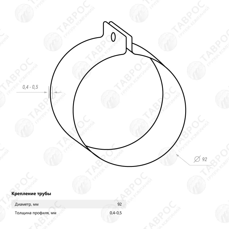 Крепление трубы (хомут) – это изделие, с помощью которого трубы водостока крепятся к стене. Изготавливается из тонколистовой оцинкованной стали и оцинкованной стали с полимерным покрытием. Стальная основа обеспечивает прочность, а цинковое и полимерное покрытия высокую антикоррозионную стойкость. Благодаря этим свойствам этот элемент может эксплуатироваться более 20лет. В качестве полимерного покрытия, в большинстве случаев, используется такой полимер как полиэстер. Умеренная цена в сочетании с высоким качеством — причины его популярности. Разнообразные цвета по RAL и оптимальное соотношение цена/качество позволят Вам подобрать наиболее подходящий вариант для любой кровли.