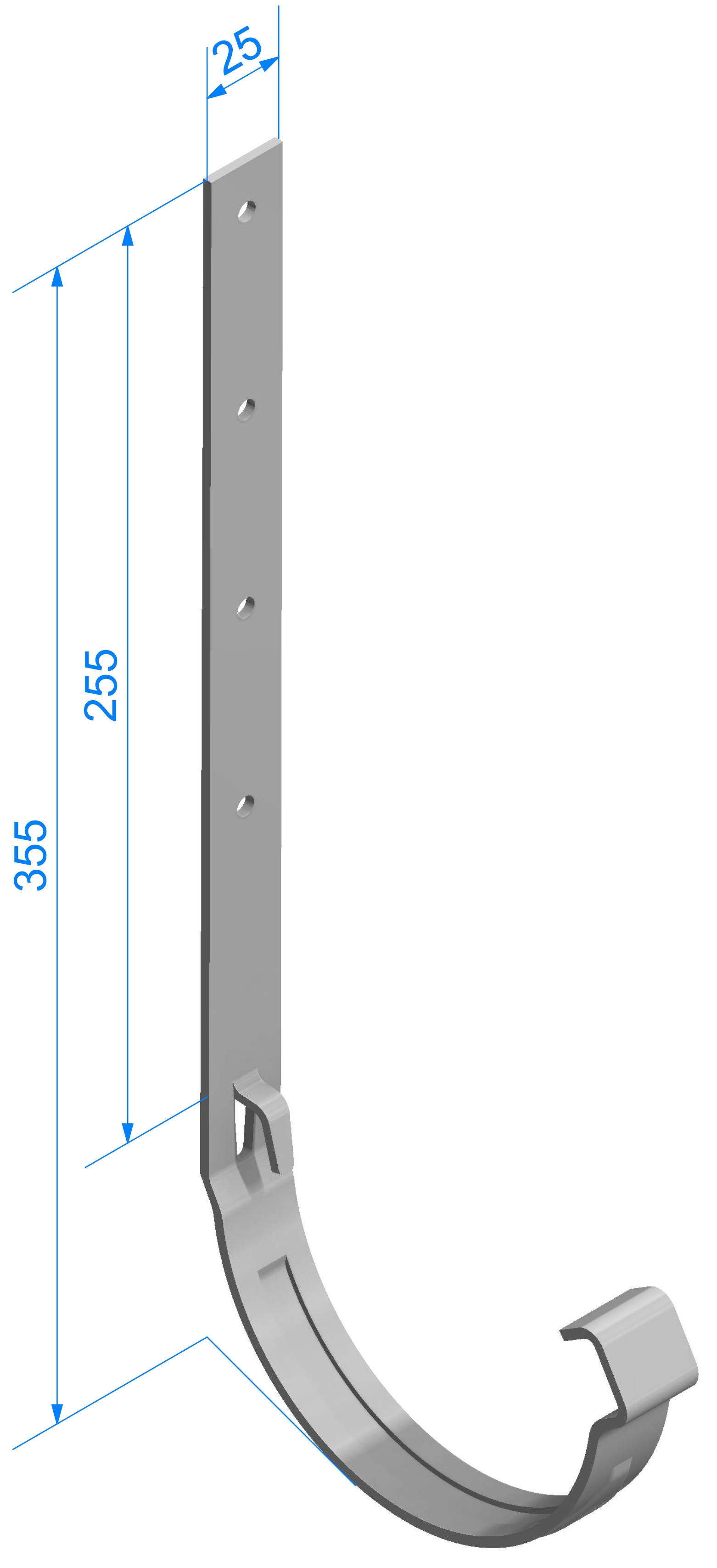 Металлические кронштейны для желоба, они же держатели применяются в том случае, когда крепление производится на обрешетку, сплошное основание или стропила, но не на лобовую доску.  Длина опорной части кронштейна – 300 мм.