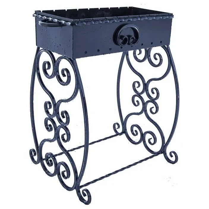 Данный мангал представляет собой типичный образец минимализма и функциональности. Это небольшой по габаритам стационарный мангал, его малый вес позволяет перемещать его по участку в нужную зону или заносить в помещение после использования. Изготовлен из профтрубы 20х20мм и листовой стали толщиной 2мм с чёрной порошковой покраской. Опоры мангала выполнены в виде ажурной конструкции, что придаёт изделию определённый шарм. Несмотря на максимально простое устройство и отсутствие каких-либо дополнительных элементов мангал успешно решает задачу по приготовлению вкусной и здоровой пищи, а его низкая стоимость Вас приятно удивит. Данное изделие всегда поможет Вам прекрасно отдохнуть на свежем воздухе.