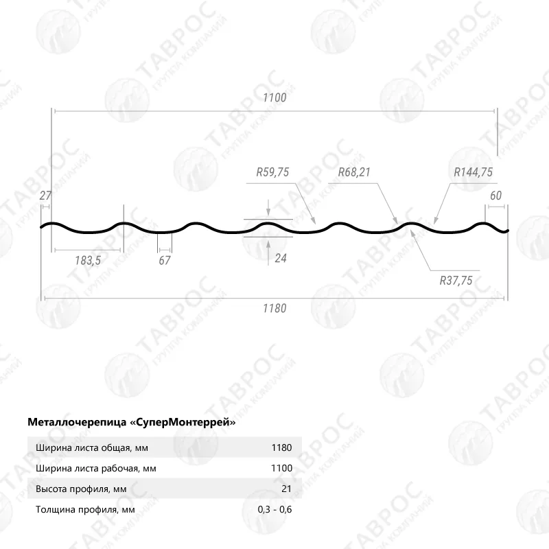 Профиль волновой Супермонтеррей 1200*1180*0,4 Гладкий полиэстер RAL 1015