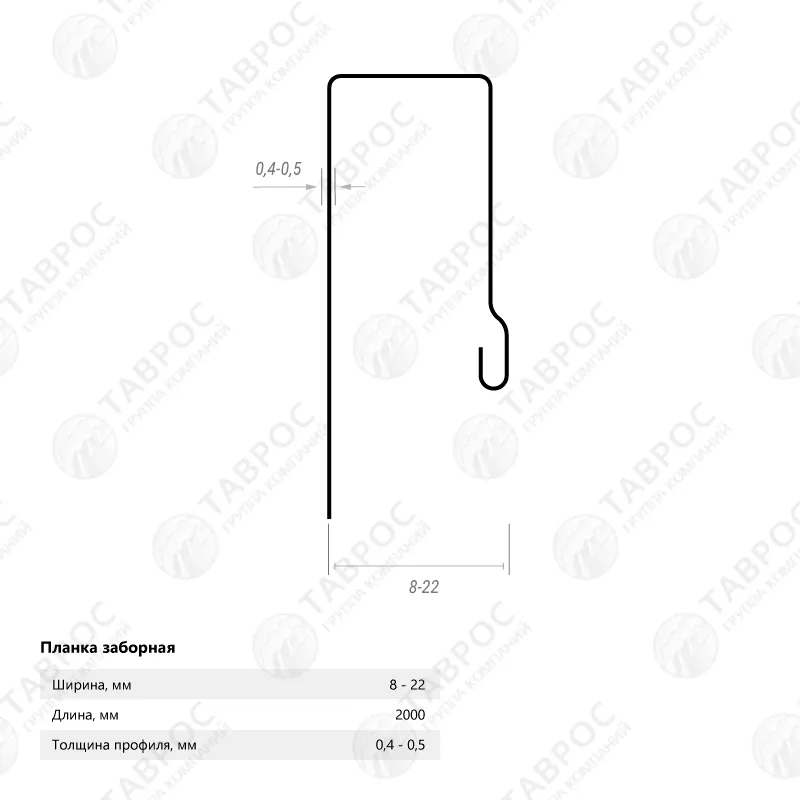 Планка заборная Гладкий полиэстер RAL 7004 (Серый) 2000*22