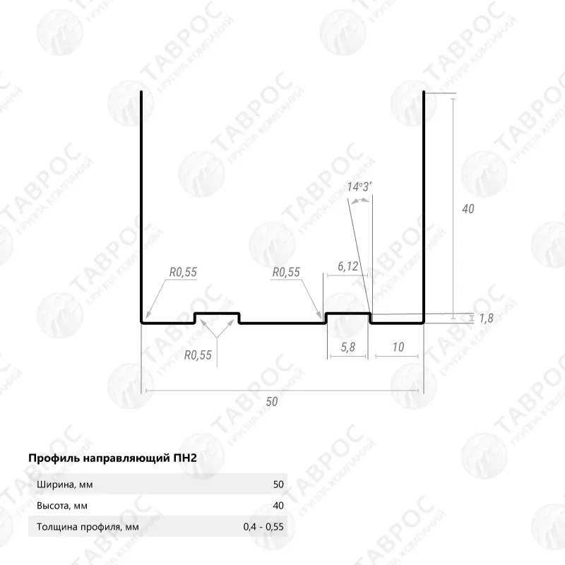 Профиль направляющий (ПН-2) 50x40x3000x0,6