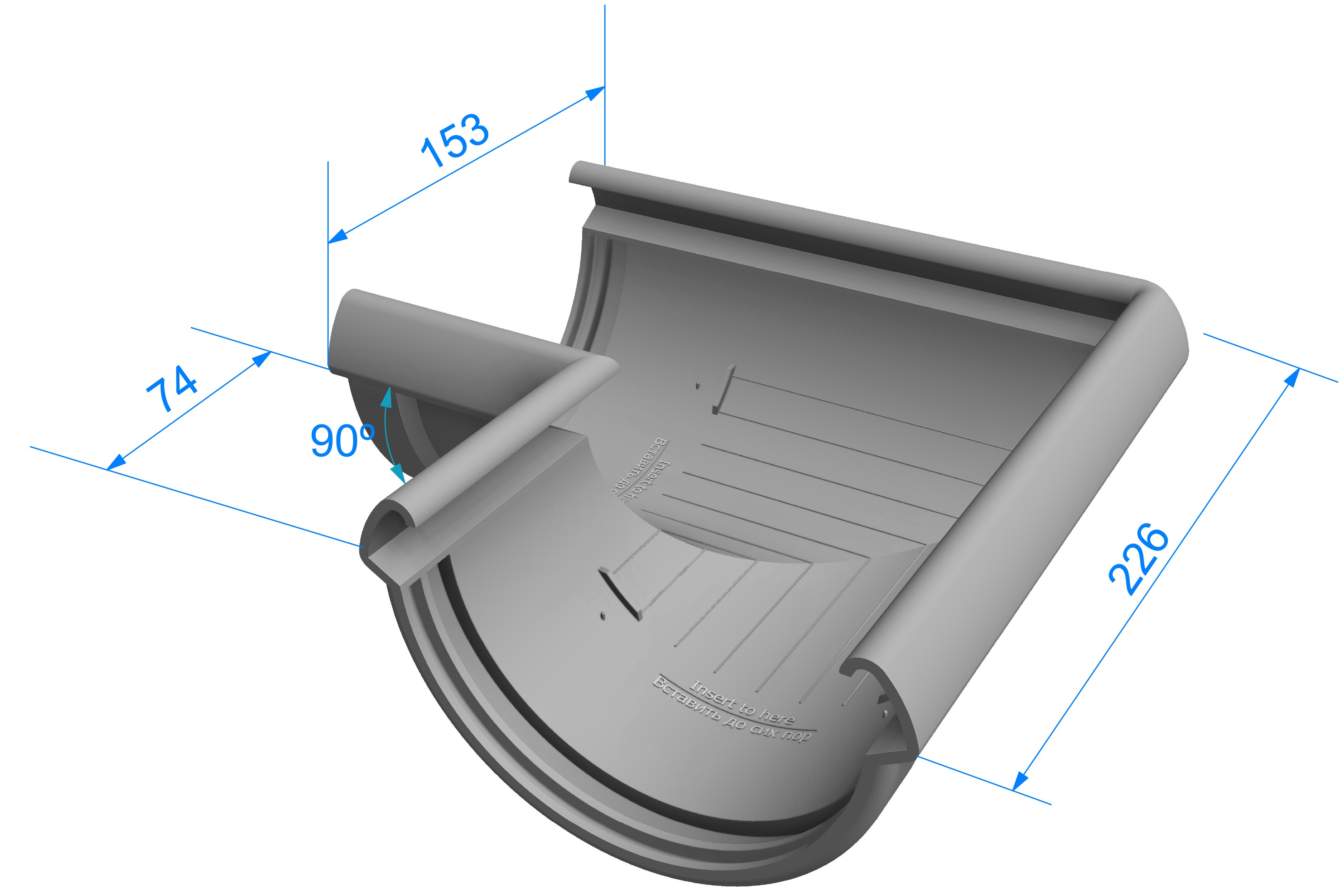 Устанавливается на внешних и внутренних углах кровли и предназначен для соединения желобов под углом 90° в целях изменения направления движения воды.