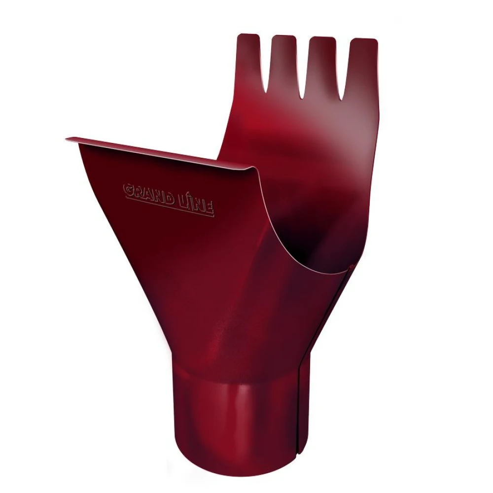 - Устанавливается на водосточном желобе и является устройством, передающим поступающую из желоба воду в водосточную трубу.